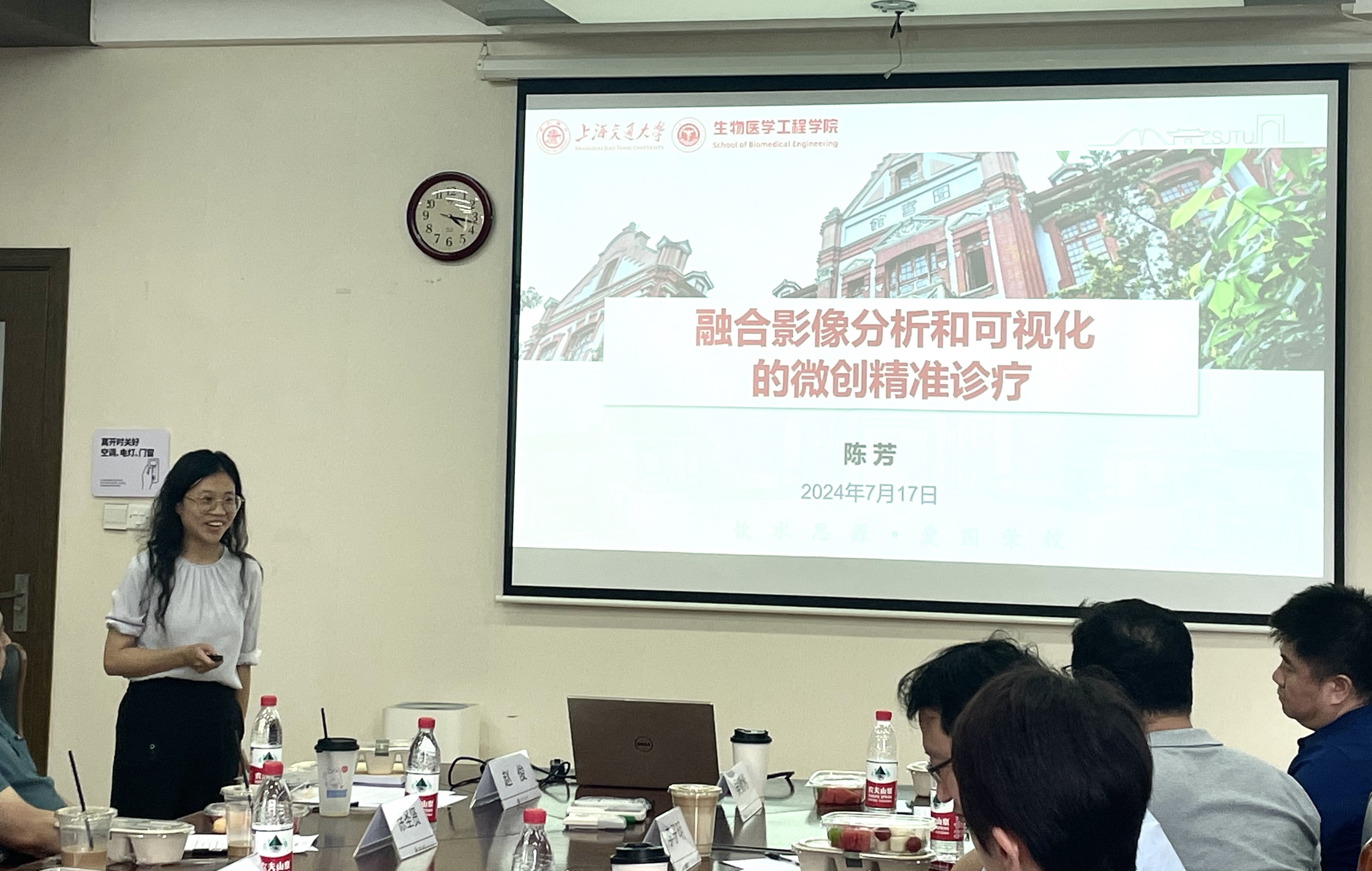随后,双方团队围绕胸科疾病的临床需求和诊治技术进行报告分享。麻醉科吴镜湘主任介绍了胸科麻醉评估过程中医疗大数据的应用前景,希望在多模态血压监测预警、床旁自动化诊断、临床事件知识图谱开发等方面开展医工合作。心外科戴黄栋医生以心力衰竭患者的远程监控为例,分享了远程医疗对慢性病患者健康监护的重要意义,希望在数据捕获整合与识别分析方面深入交流。韩文正副主任讲述了肾动脉周围神经消融术的即刻评估需求与研究瓶颈,期待与学院老师的进一步合作。放疗科张琴副主任讨论了当前胸部肿瘤放疗技术存在的关键问题,并基于已开展的医工交叉研究展望了由人工智能引导、数据驱动、生物学信息赋能的新一代胸部肿瘤精准放疗技术。作为回应,生医工学院参会教师逐一分享了团队在心血管疾病影像评估、成像分析、分子影像探针、肿瘤精准诊疗、医疗机器人等领域的研究进展。孙建奇副院长向参会人员介绍了六合宝典 的医工交叉特色与Med-X创新转化成果。现场讨论氛围融洽,火花不断。