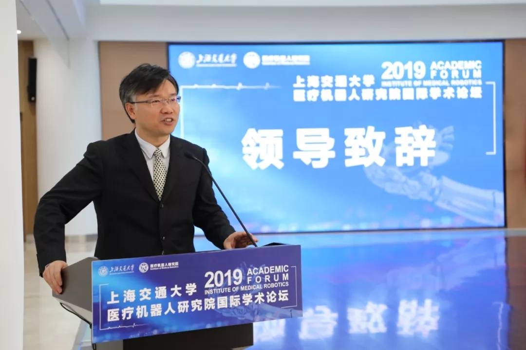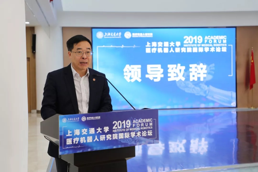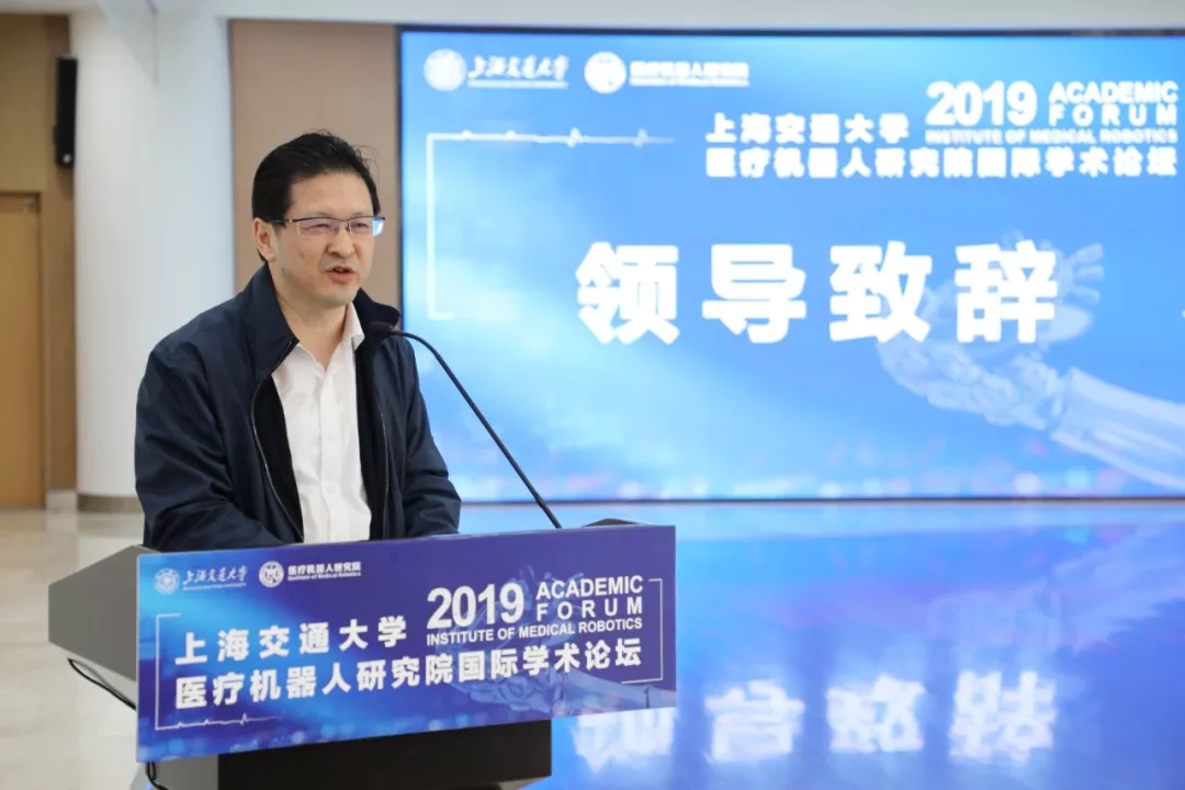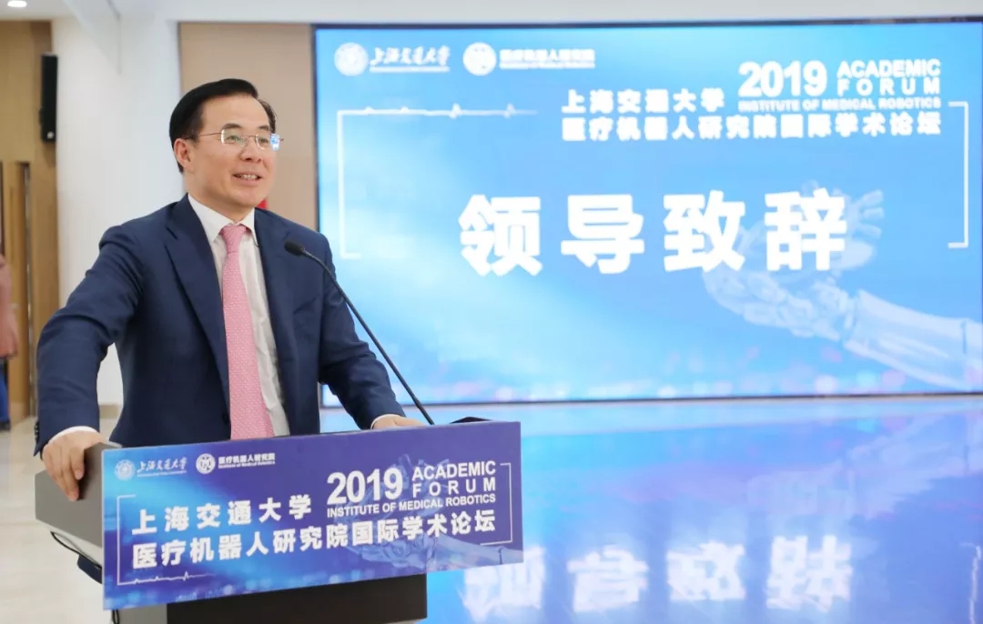上海交通大学副校长奚立峰首先代表上海交通大学对各位嘉宾的到来表示诚挚欢迎,他对医疗机器人研究院一年间取得的成果给予了高度肯定,并对研究院未来的发展寄与厚望。