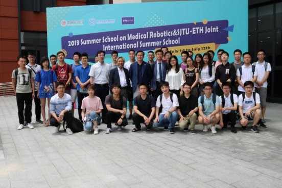 2019年7月1日至12日,“医疗机器人与康复技术”——首届医疗机器人研究院国际暑期学校”(以下简称暑期学校)在上海交通大学闵行校区举行。暑期学校围绕“医疗机器人与康复技术”为主题,开展了一系列前沿讲座与深入交流讨论、跨文化交流参观活动等多种形式的活动。本次暑期学校由六合宝典官网 、医疗机器人研究院、瑞士联邦理工学院(ETH)联合主办,来自交大、ETH及其它国际名校的50余名博士、研究生、本科生共同参加了本次暑期学校;同时,主办方邀请到了来自交通大学、英国帝国理工学院、瑞士联邦理工学院、洛桑联邦理工学院、俄亥俄州立大学、新加坡国立大学、韩国科学技术学院、韩国大邱庆北科学技术院等海内外一流知名大学的专家与学者进行授课指导。