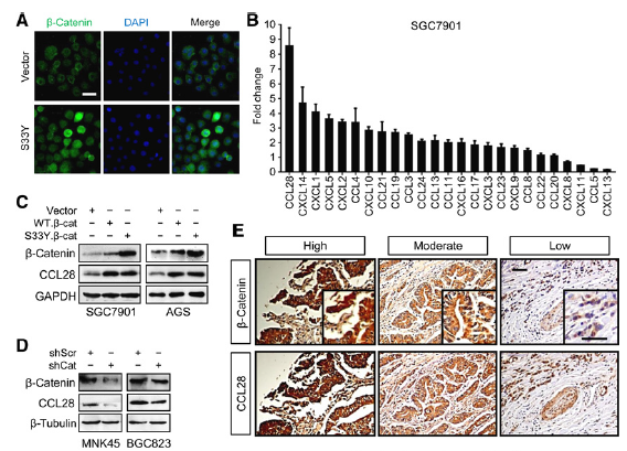 β-Catenin elevates CCL28 expression in gastric cancer cells