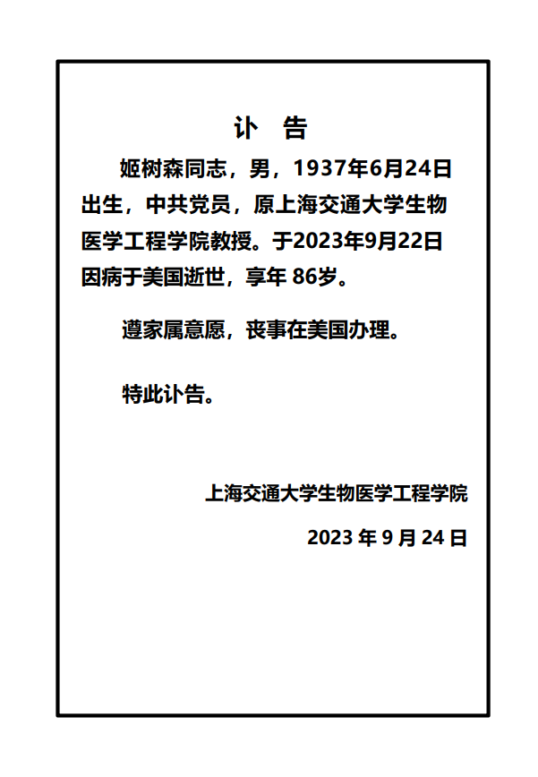 姬树森,男,汉族,1937年6月生,江苏淮安人。1960年1月加入中国共产党。原上海交通大学精密仪器系生物医学工程及仪器专业教授,博士生导师。1997年退休。
