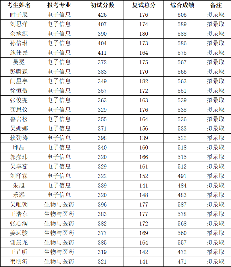 一、 拟录取名单