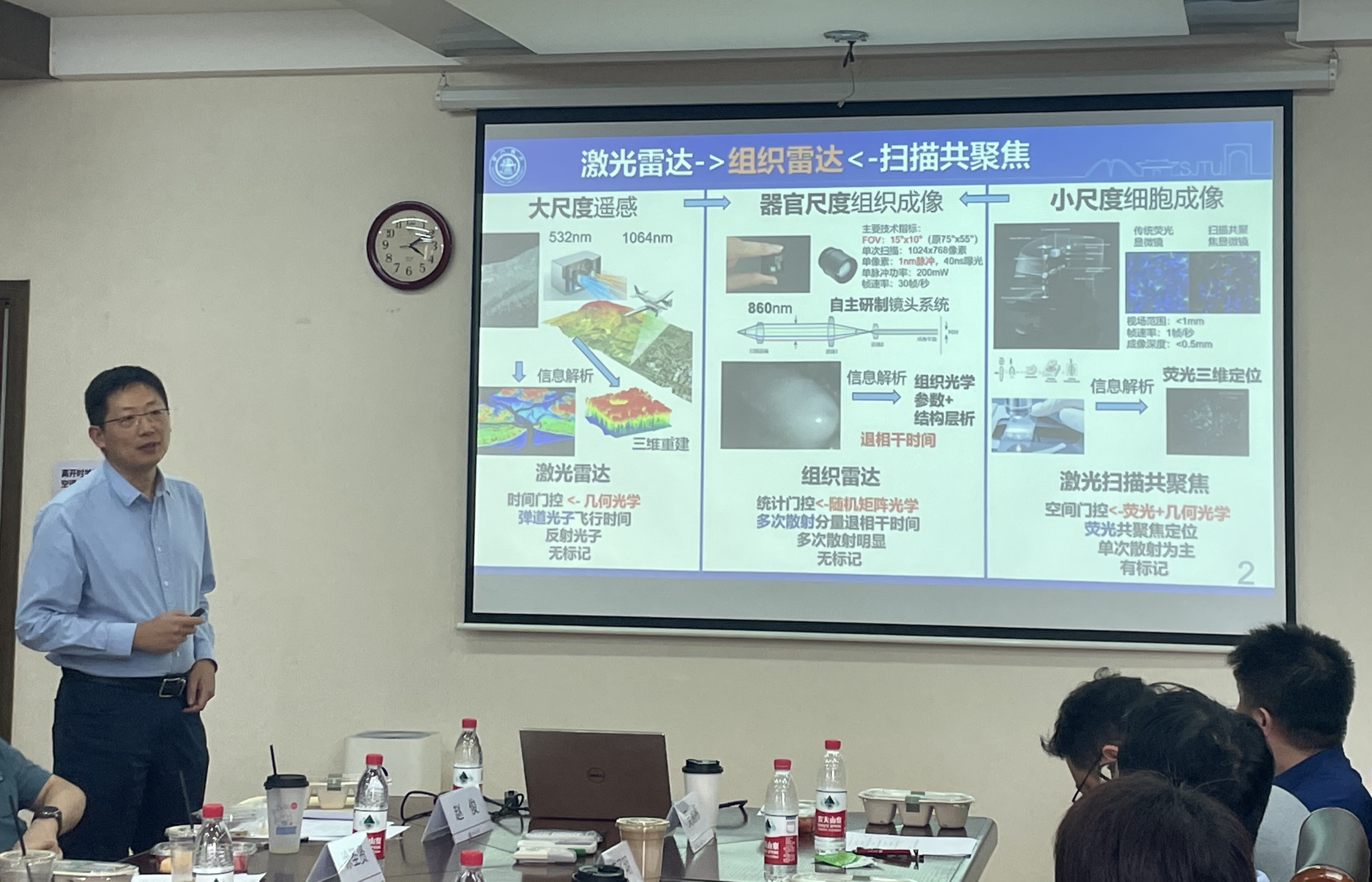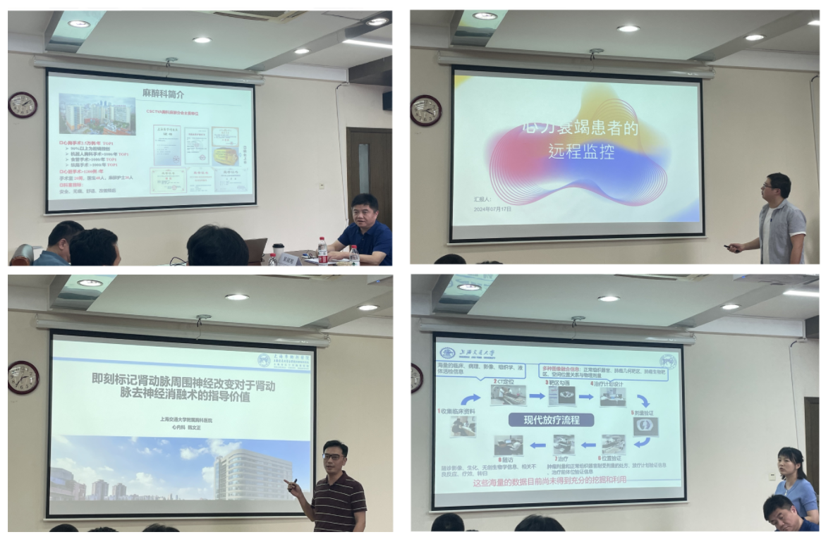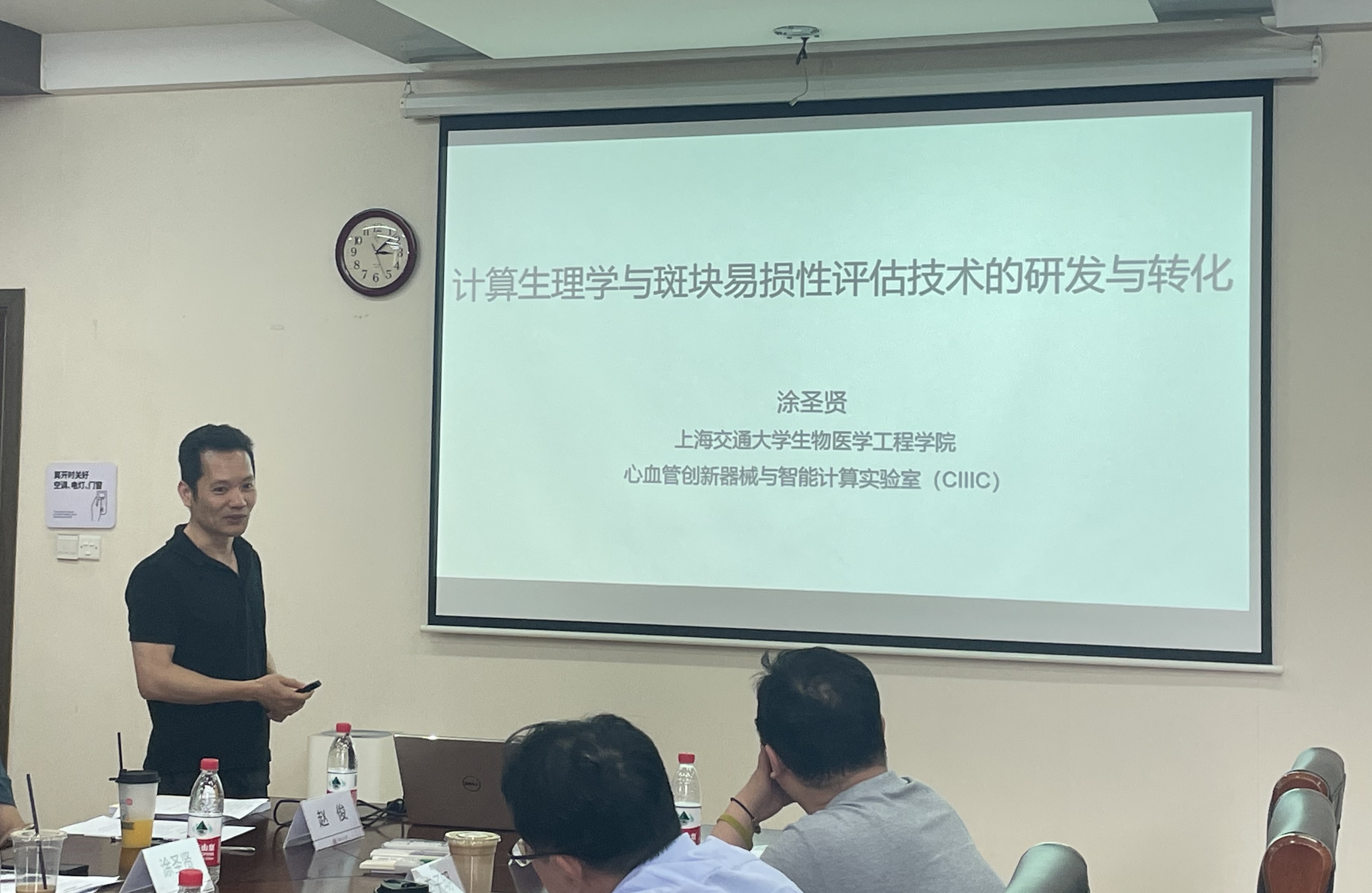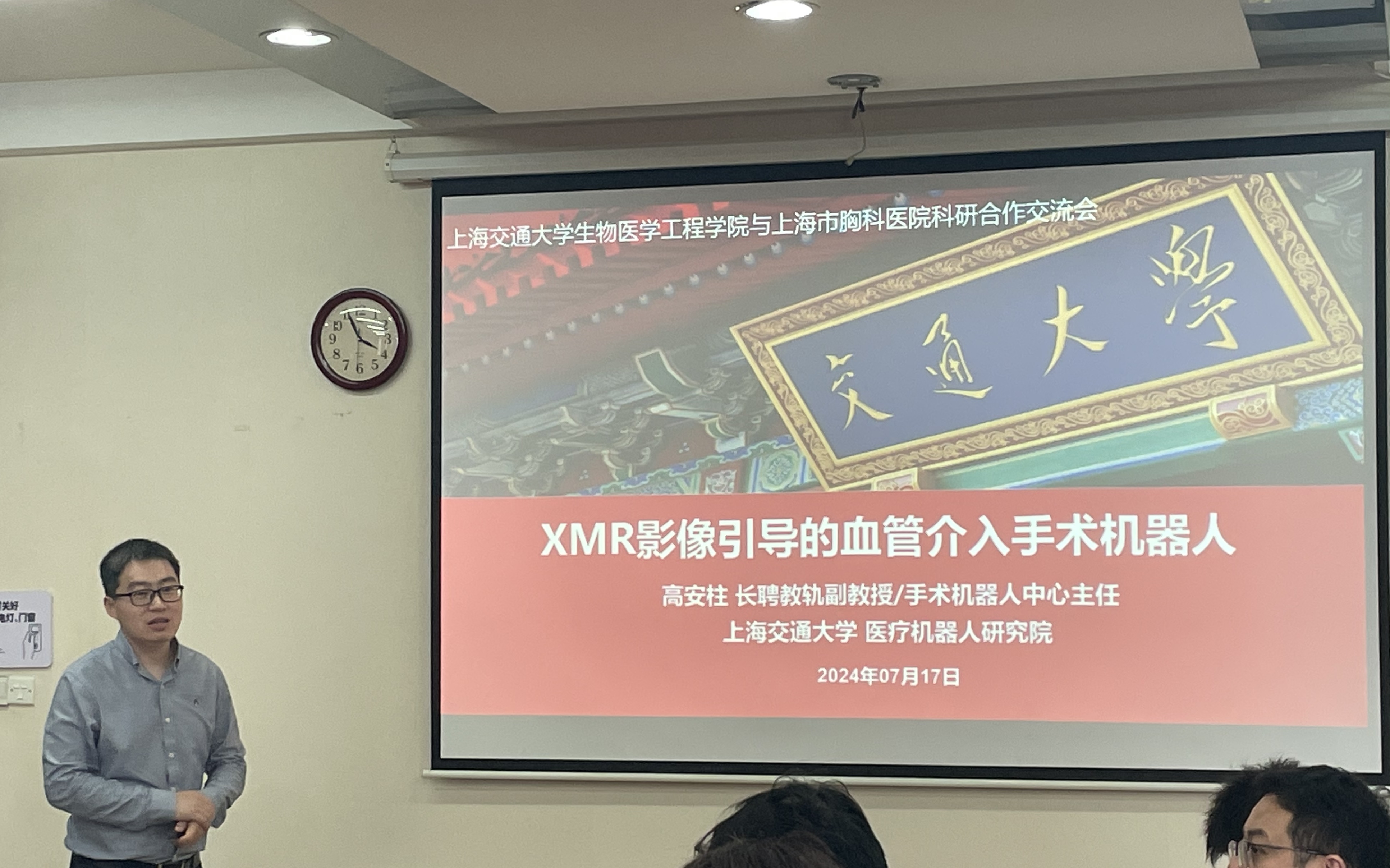 随后,双方团队围绕胸科疾病的临床需求和诊治技术进行报告分享。麻醉科吴镜湘主任介绍了胸科麻醉评估过程中医疗大数据的应用前景,希望在多模态血压监测预警、床旁自动化诊断、临床事件知识图谱开发等方面开展医工合作。心外科戴黄栋医生以心力衰竭患者的远程监控为例,分享了远程医疗对慢性病患者健康监护的重要意义,希望在数据捕获整合与识别分析方面深入交流。韩文正副主任讲述了肾动脉周围神经消融术的即刻评估需求与研究瓶颈,期待与学院老师的进一步合作。放疗科张琴副主任讨论了当前胸部肿瘤放疗技术存在的关键问题,并基于已开展的医工交叉研究展望了由人工智能引导、数据驱动、生物学信息赋能的新一代胸部肿瘤精准放疗技术。作为回应,生医工学院参会教师逐一分享了团队在心血管疾病影像评估、成像分析、分子影像探针、肿瘤精准诊疗、医疗机器人等领域的研究进展。孙建奇副院长向参会人员介绍了六合宝典 的医工交叉特色与Med-X创新转化成果。现场讨论氛围融洽,火花不断。