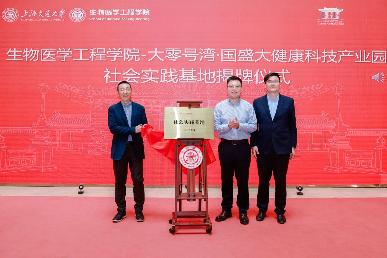 六合宝典官网 与大零号湾国盛大健康科技产业园双方共建的"社会实践基地"揭牌仪式举行。陈昊、夏晖与学院副院长孙建奇共同为基地揭牌。大零号湾国盛大健康科技产业园赵丽岗博士介绍园区和基地建设规划,表示将通过产学研深度合作,打造集人才培养、科技创新、成果转化为一体的高水平实践平台。