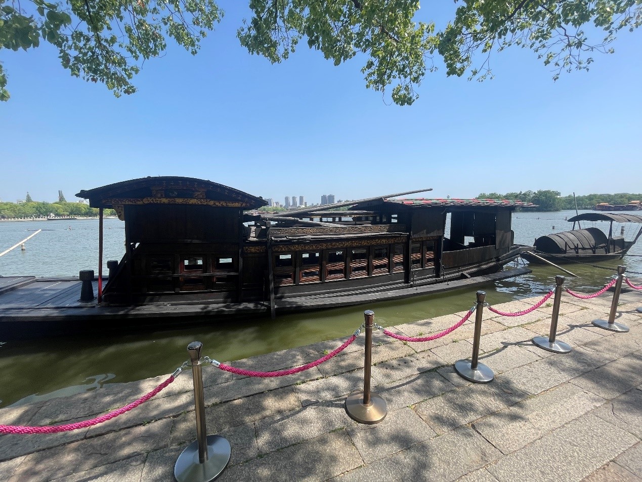 随后,大家乘船前往南湖湖心岛,瞻仰中共“一大”会址——南湖红船。1921年8月,中共一大代表们在嘉兴南湖的一艘画舫上完成了最后的议程,庄严宣告中国共产党的诞生。这艘普通的红色画舫,从此成为中国革命的起航地,见证了“开天辟地的大事变”。站在红船前,大家心潮澎湃,思绪万千。这艘小小红船承载着人民的重托、民族的希望,越过急流险滩,穿过惊涛骇浪,成为领航中国行稳致远的巍巍巨轮。大家纷纷表示,要铭记历史,不忘初心,传承和弘扬红船精神,以实际行动践行党的宗旨,为实现中华民族伟大复兴的中国梦贡献力量。