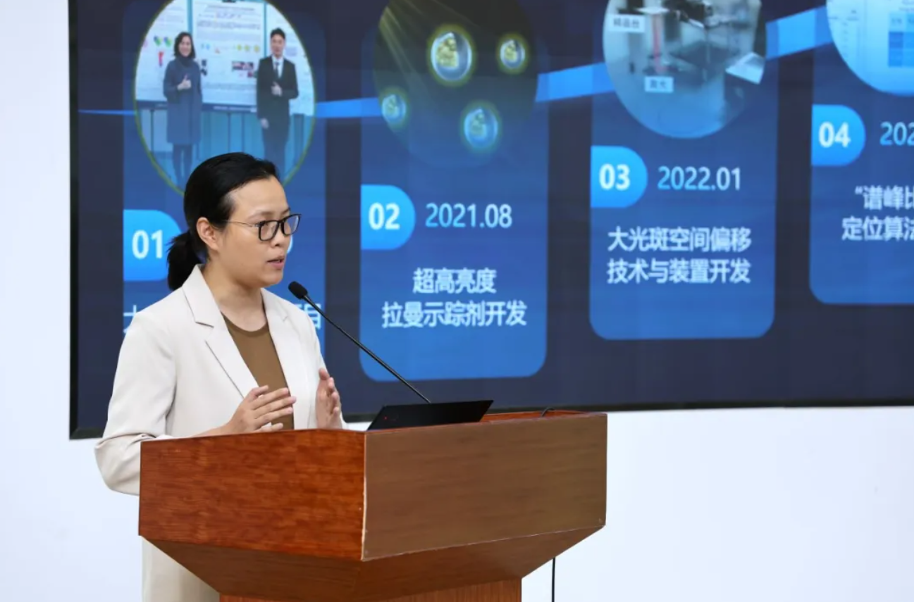 在科研创新方面,她像一颗攻坚克难的"特种螺丝钉",瞄准"无创活体检测"这一国家急需突破的技术壁垒。面对传统光学技术穿透深度不足的"松动环节",和团队一起从理论模型开始"校准",在探针设计上"精修",通过系统开发"加固",最终用"活体透射拉曼光谱技术"实现了10厘米生物组织的无创检测。这颗"螺丝钉"的坚固性体现在:团队成功研制首台小动物拉曼活体成像系统,并开发具有自主知识产权的拉曼光学断层扫描软件包,在前哨淋巴结定位等场景展现应用潜力。研究成果以共同通讯作者身份发表在Advanced Science、Small Methods、ACS Nano等高水平期刊,目前总被引1500余次,H-index=20。相关技术一经发表就获得国内外同行高度关注,受到人民日报、澎湃新闻等媒体广泛报道。