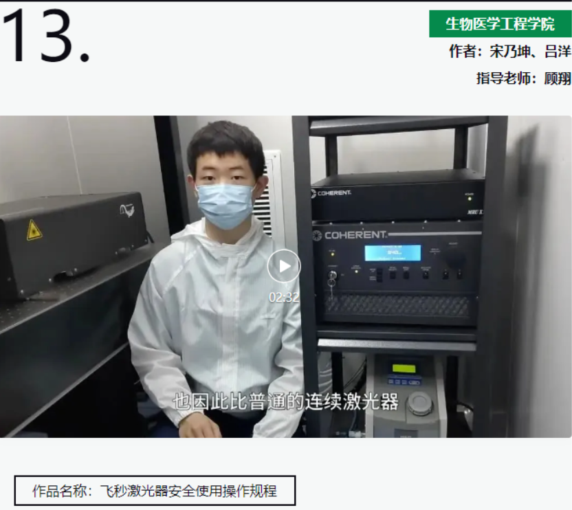 此外,学院积极组织师生参与学校“安全生产月”系列活动,如实验室安全微视频大赛、安全知识竞赛等。其中,学院一个3B类激光设备相关的实验室安全员提交的设备安全相关作品《飞秒激光器安全使用操作规程》,凭借其创新性和实用性,在微视频大赛中崭露头角,充分展现了学院在实验室安全管理方面的创新成果和师生的专业素养。