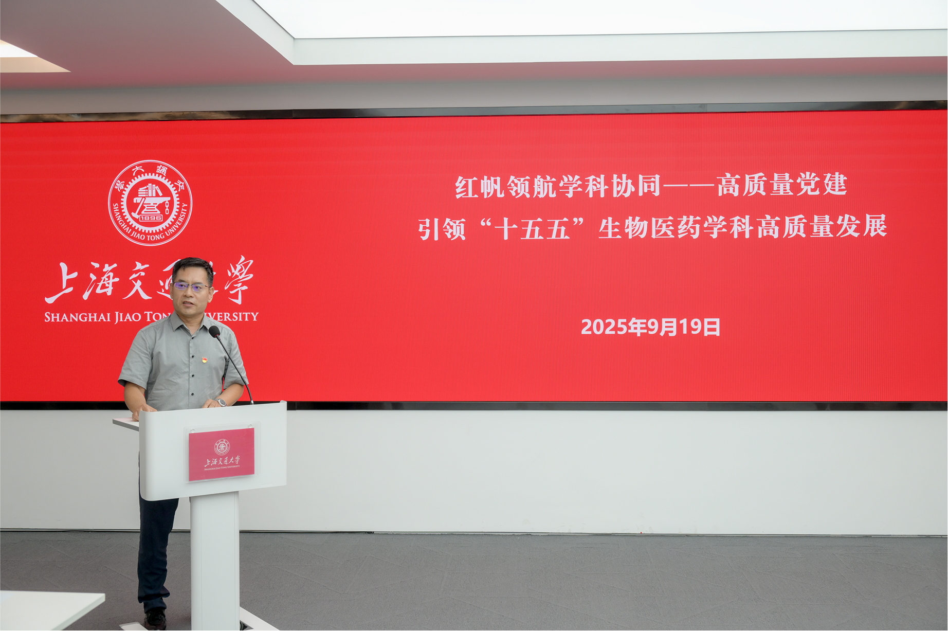 2025年9月19日下午,在校党委的指导支持下,学院与系统生物医学研究院、生命科学技术学院、药学院、转化医学研究院和溥渊未来技术学院开展联组学习研讨,学科协同、优势互促,以高质量党建引领“十五五”生物医药及交叉学科高质量发展。本次活动邀请到中共中央党校(国家行政学院)党建专业董教授进行授课,上海交通大学党委组织部副部长、党校副校长张濠出席会议致辞,六家单位的党委书记、副书记、党委委员、党支部书记等70余名党员参加学习。
